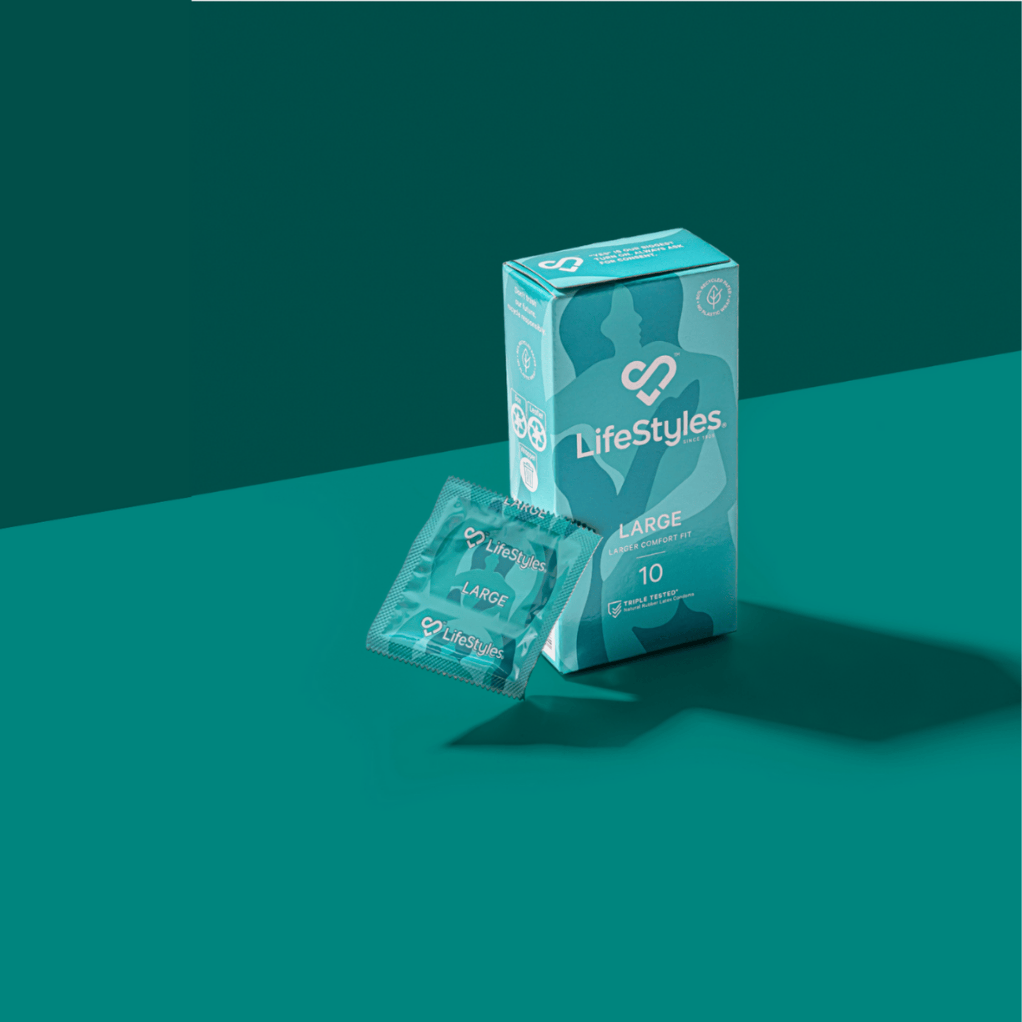 Natural Rubber Latex Condoms. Always read the label and follow the directions for use. LifeStyles® Large condoms provide a larger fit, compared to LifeStyles® Regular condoms.